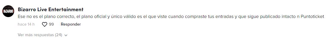 "Ese no es el plano correcto. El plano oficial y único válido es el que viste cuando compraste tus entradas y que sigue publicado intacto en Puntoticket", señalaron en los comentarios.