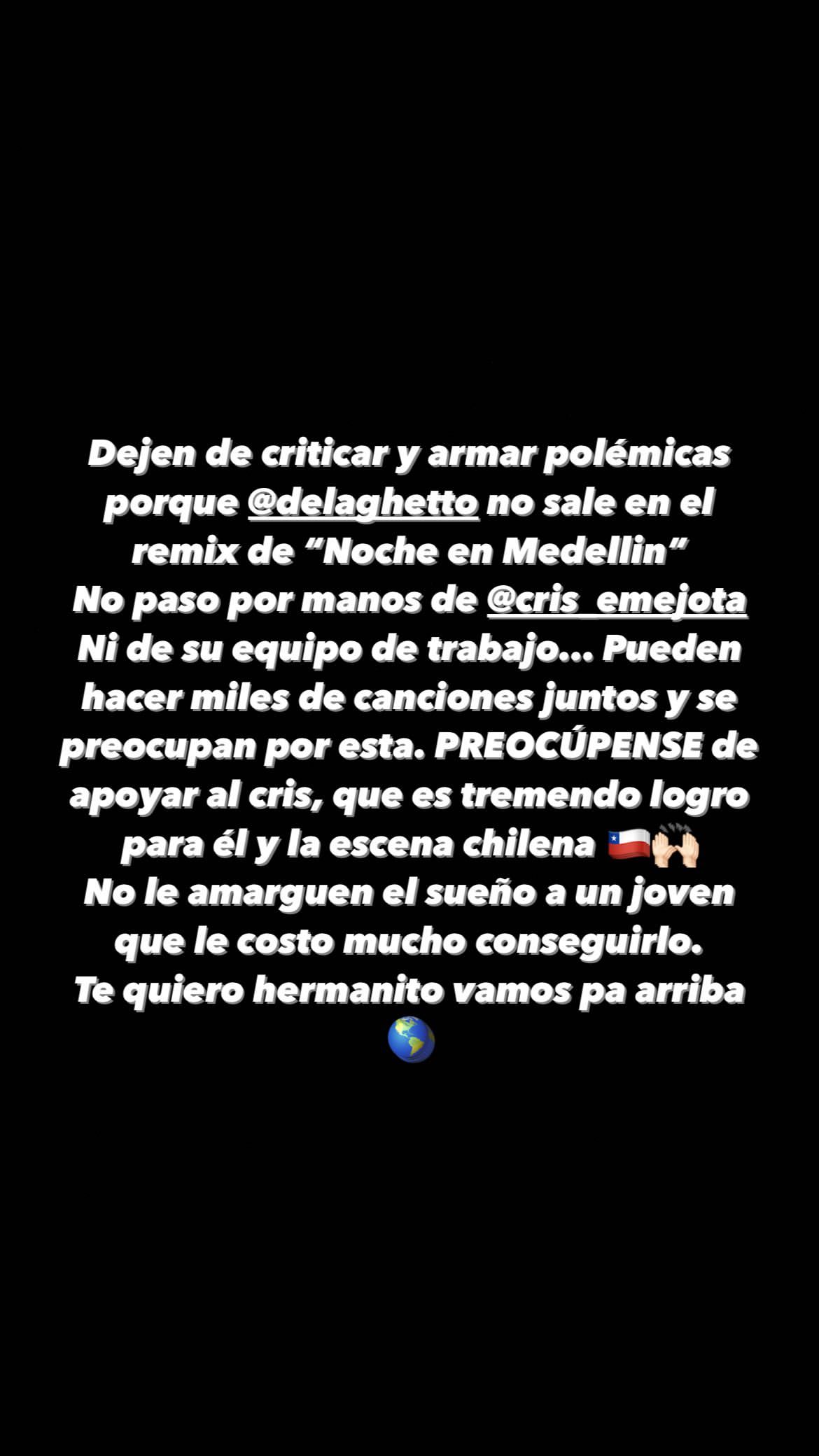 "Preocúpense de apoyar al Cris, que es tremendo logro para él y la escena chilena", señaló en su cuenta de Instagram.