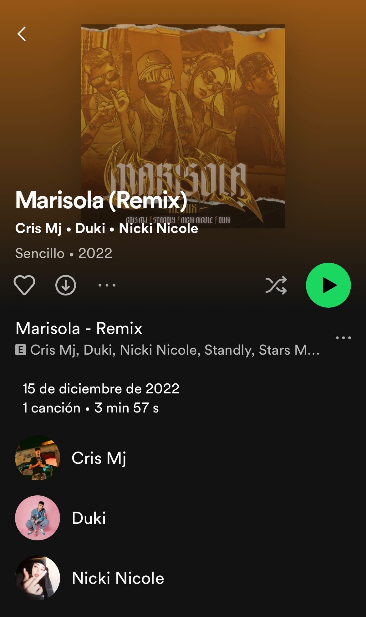 Tras el mensaje, diversos usuarios abrieron la aplicación de Spotify y confirmaron que, efectivamente, el autor de Panamera no aparece entre los autores del remix. Cris Mj de momento no se ha referido a la supuesta acusación.