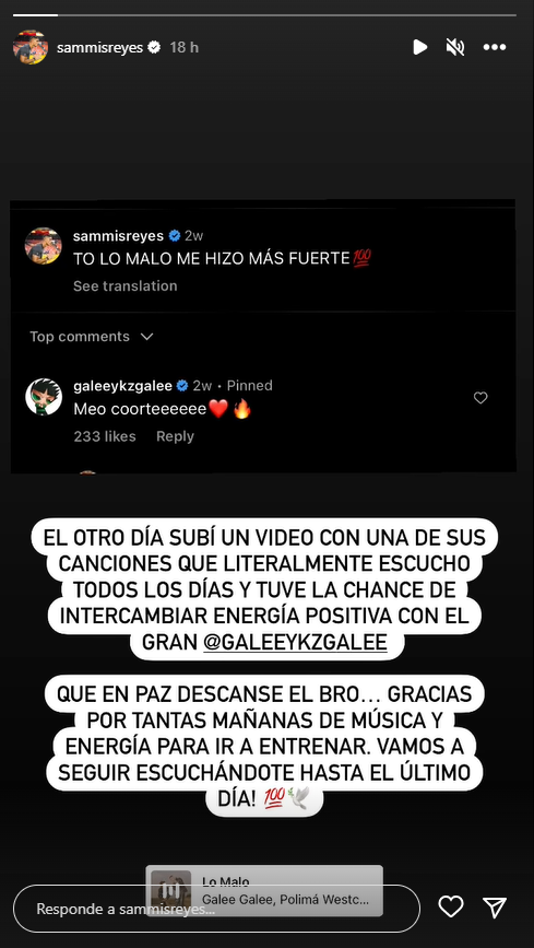 Big Cut. "To lo malo me hizo más fuerte", escribió el deportista, en referencia a una canción del trapero. Por su parte, Galee Galee contestó: