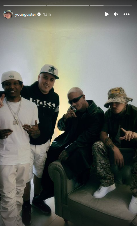 Quien también compartió un registro de su encuentro con J Balvin, fue Young Cister, quien a través de sus historias de Instagram subió una foto posando junto a sus compañeros.