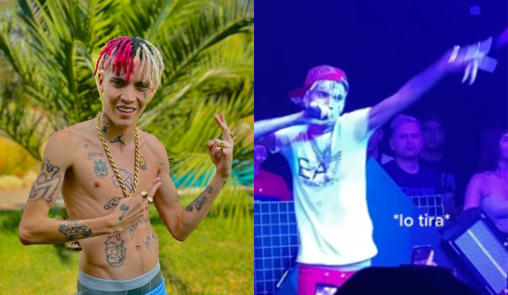 Según se aprecia en el registro, el cantante estaba hablando, sin música de fondo, cuando el mencionado elemento cayó sobre el escenario. En eso, no dudó en expresar su rechazo al acto y se deshizo de inmediato de él.