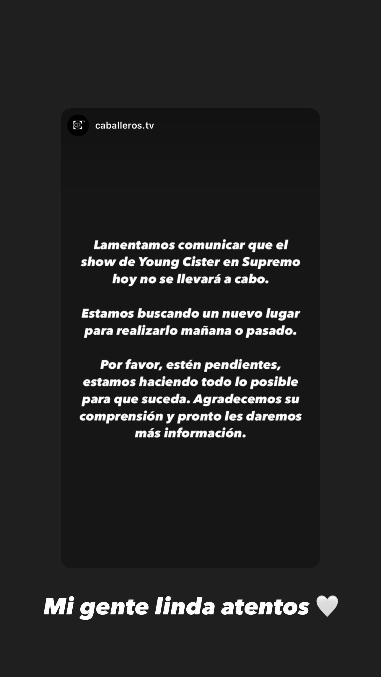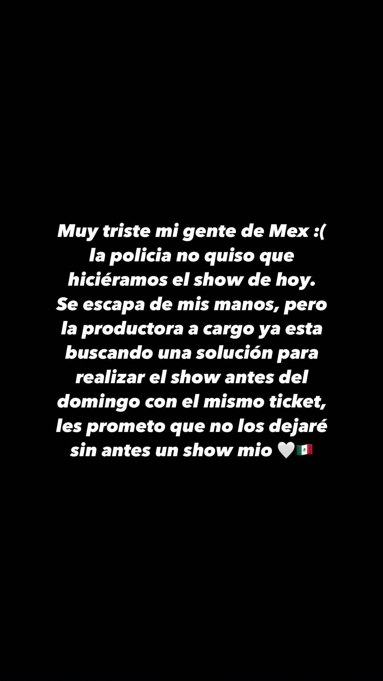 "la policía no quiso que hiciéramos el show de México". "Muy triste, mi gente.