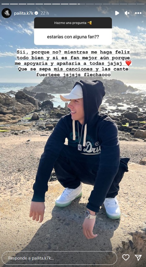 En tanto, el intérprete de Ultra Solo se manifestó abierto a tener una relación con alguna seguidora y sostuvo: "¿Por qué no? Mientras me haga feliz todo bien, y si es fan mejor aún porque me apoyaría y apañaría a todas",.