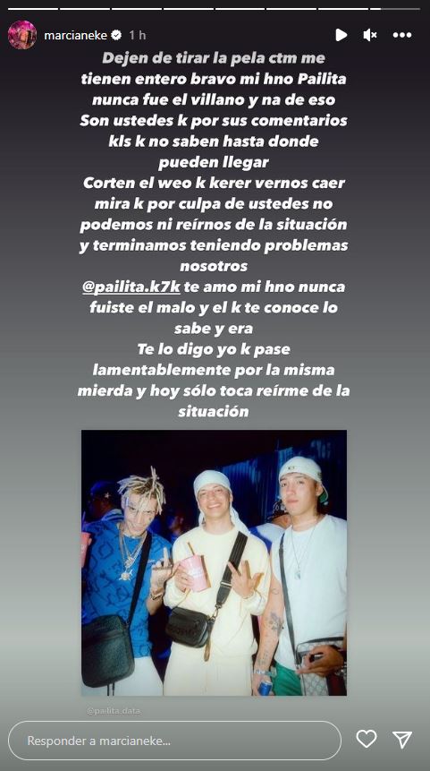 Pailita te amo mi hermano, nunca fuiste el malo y el que te conoce lo sabe y era. Te lo digo yo, que pasé por la misma mierda, y hoy sólo toca reírme de la situación", escribió.