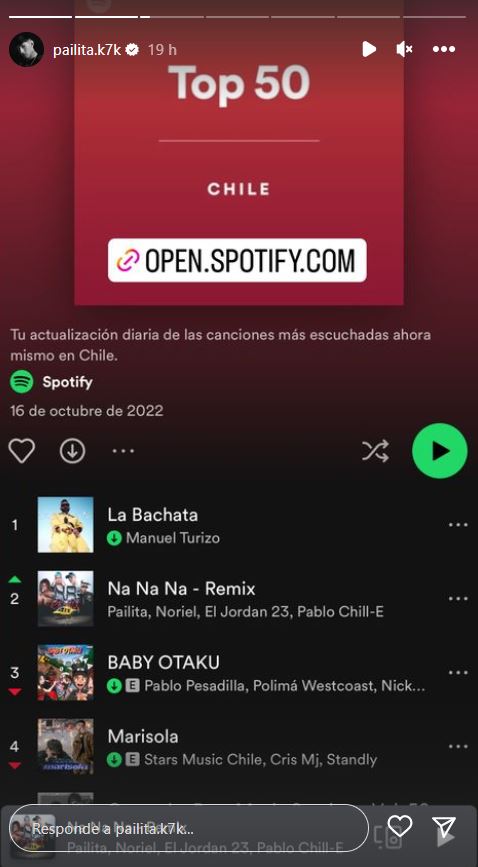 Este gran momento del artista urbano también se ve reflejado a nivel nacional, ya que durante esta jornada, Pailita publicó en su cuenta de Instagram un importante logro para su carrera musical.