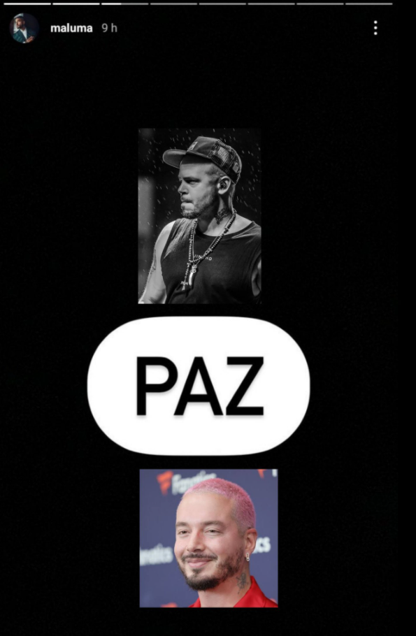 El cantante colombiano publicó una historia con la fotos de ambos artistas y con la palabra "Paz" en medio de ellos.