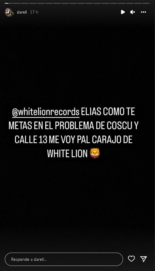 "Elías, como te metas en el problema de Coscu y Calle 13 me voy pal carajo de White Lion", escribió en sus stories de Instagram.