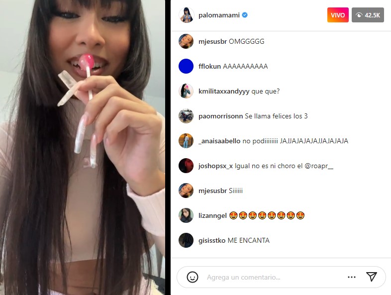 Durante el live, la cantante además se refirió sobre la polémica que generó el video de la canción Jetski, del puertorriqueño Roa, presentado por Paloma como su pareja y en el que sale su hermana Sofía Castillo en escenas muy sugerentes.