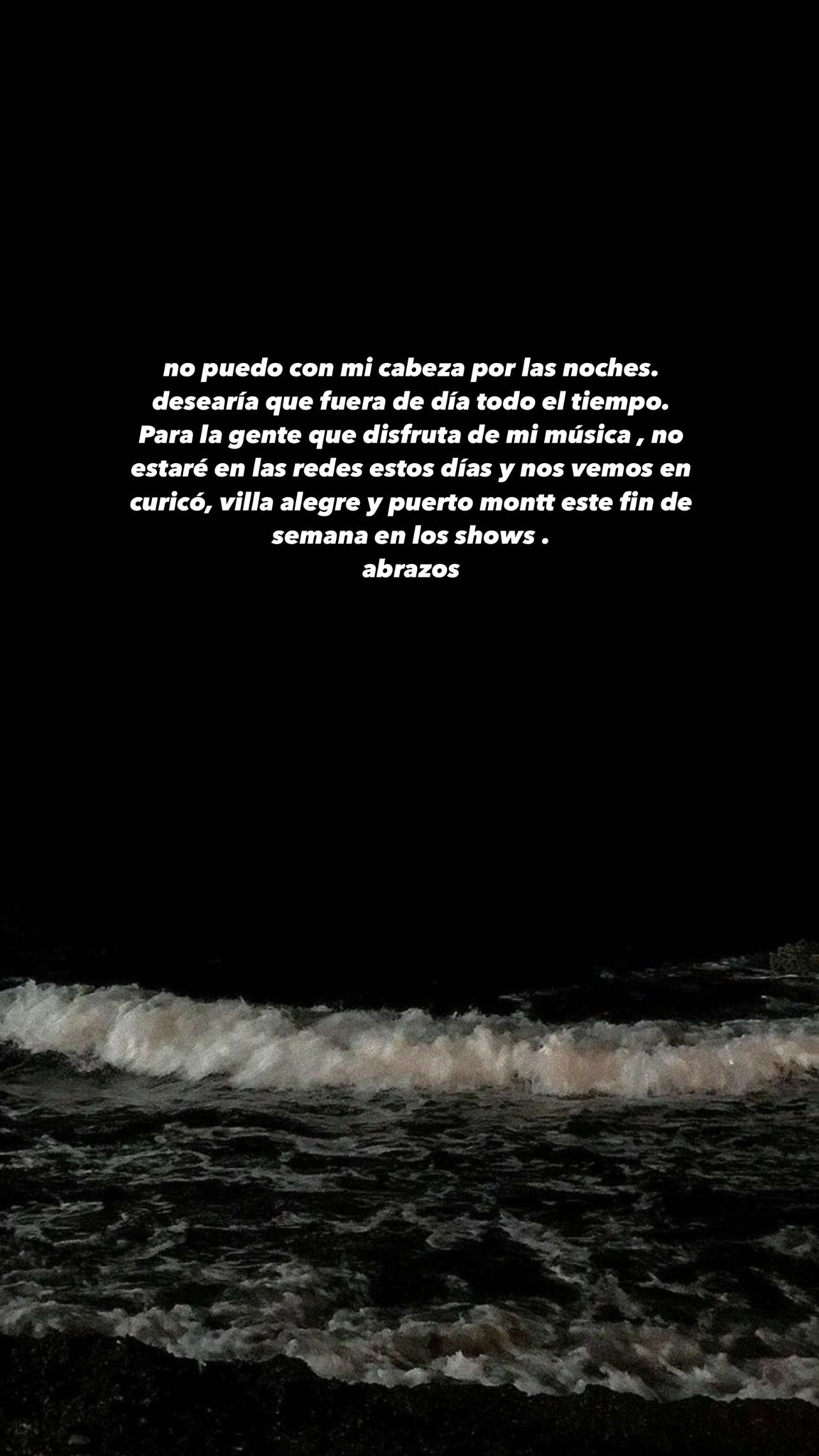 Además, el cantante nacional señaló que sí realizará los shows que tiene agendados en Curicó, Villa Alegre y Puerto Montt.