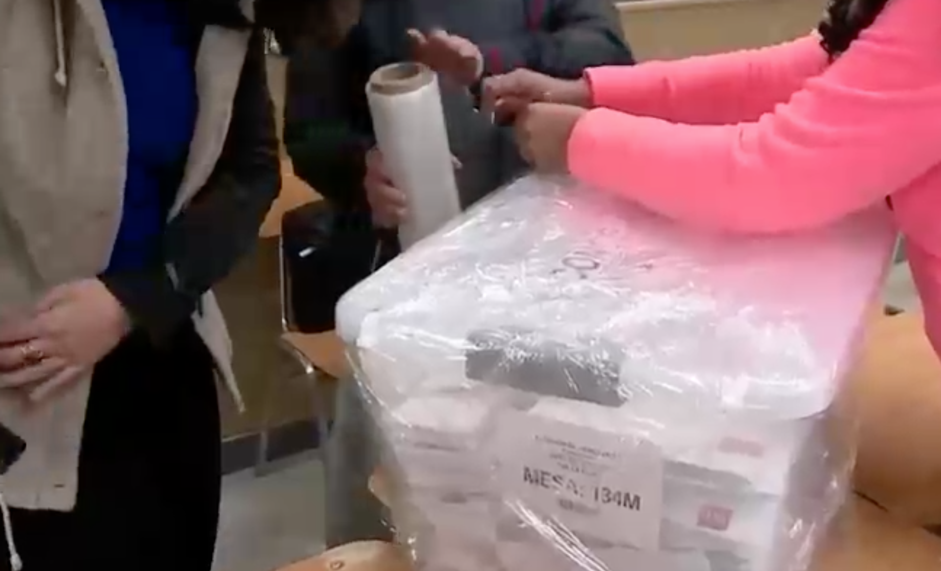 De acuerdo con lo constatado, debieron utilizar este artículo transparente junto a una cinta adhesiva común y corriente para cerrar las cuatro cajas con los votos en su interior. Luego, pegaron encima además los sellos de seguridad con sus firmas correspondientes tal como lo indica el protocolo del Servel.