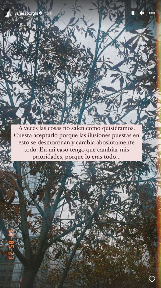 En mi caso tengo que cambiar mis prioridades porque lo eras todo...", añadió.