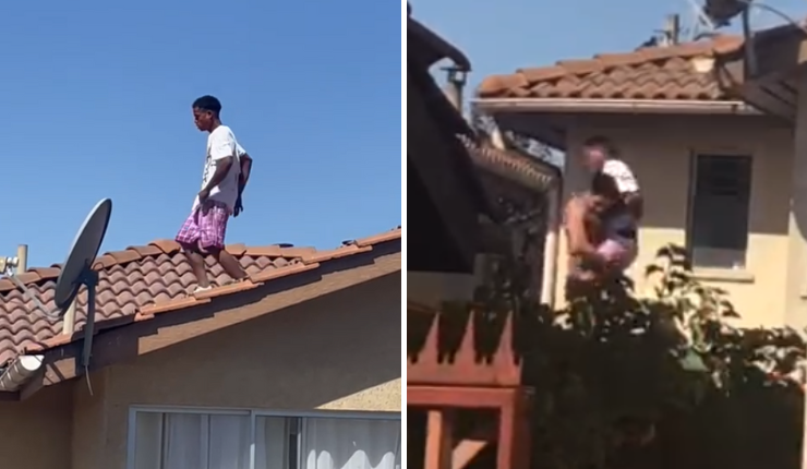 uno de ellos comenzó a caminar por los techos de las casas.