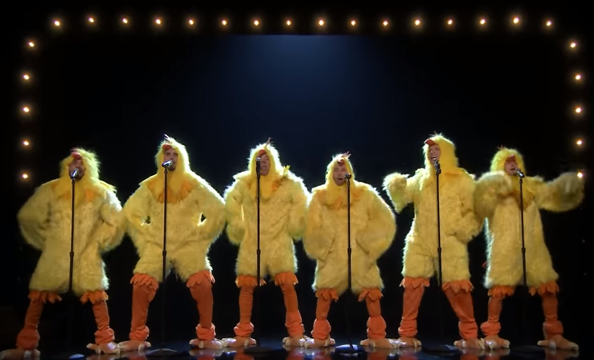 ¿Y qué hicieron en el espacio visto por millones de personas? Lo que mejor saben, cantar sus canciones, pero esta vez con un pequeño y llamativo giro: salieron disfrazados de pollos.