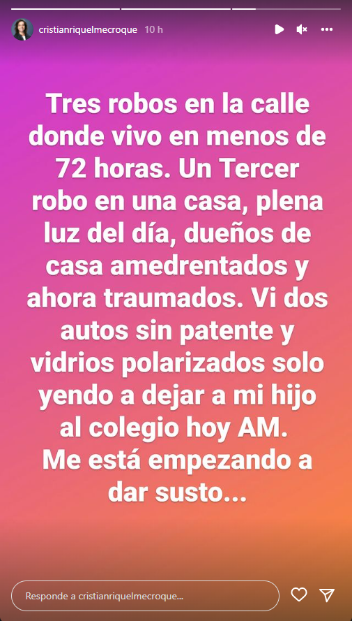 En una historia en Instagram, el conductor de Las Islas de Chile en Sabingo indicó que han ocurrido "tres robos en la calle donde vivo en menos de 72 horas".