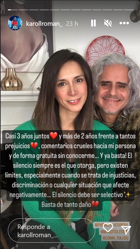 “Casi 3 años juntos y más de 2 años frente a tantos prejuicios. Comentarios crueles hacia mi persona y de forma gratuita sin conocerme y ya basta”, se defendió la joven en sus historias junto a una fotografía junto al cantante.