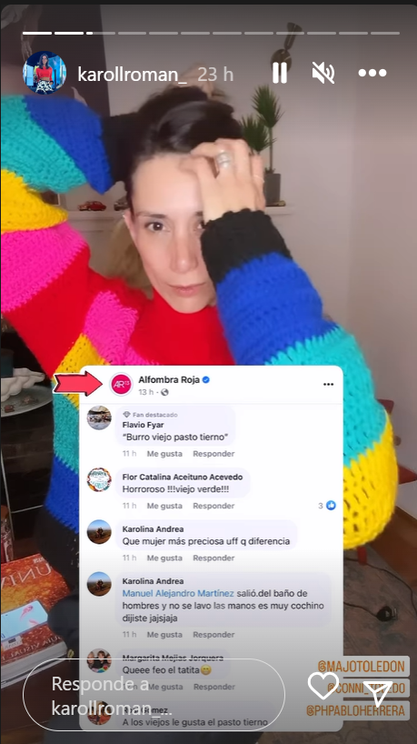 Instagram para revelar a través de sus historias, que ha recibido comentarios ofensivos relacionados con su pareja.