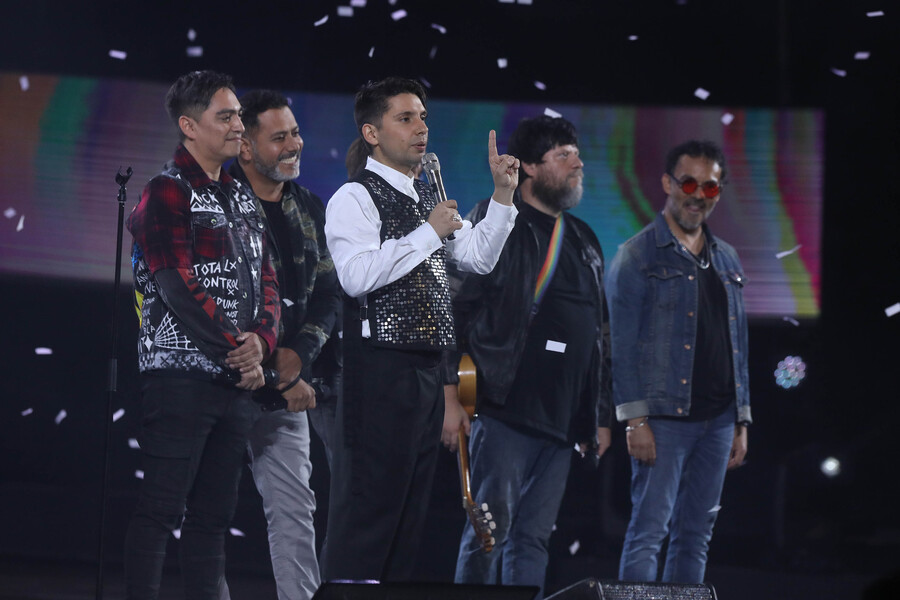 Álvaro López, Mauricio Durán, Francisco Durán, Gonzalo López y Mauricio Basualto aparecieron en el escenario de la Quinta Vergara, desatando la euforia del público.