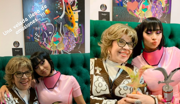 "Una velada llena de emociones", escribió Montenegro sobre una fotografía en que aparece junto a la cantante, quien sostiene las gaviotas de plata y oro en sus manos.