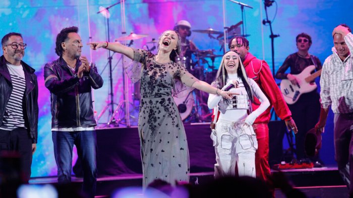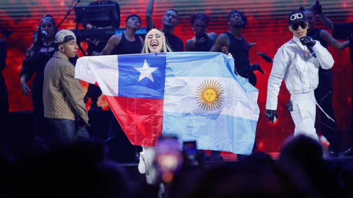 Cantó los hits Marisola remix y La terapia remix, junto a los chilenos