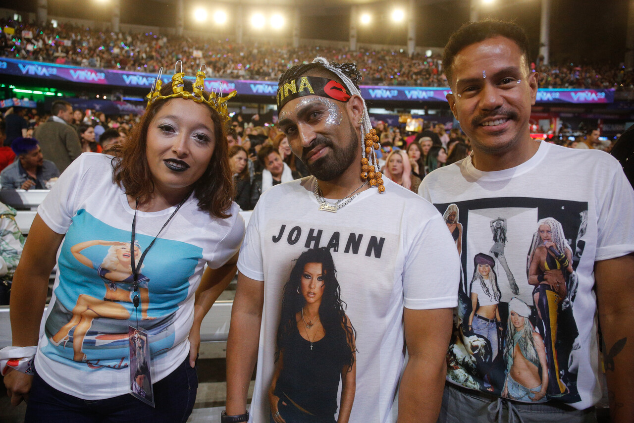 Como era de esperarse, los fanáticos de Aguilera llegaron a la Quinta Vergara con sus mejores looks que incluyeron lentejuelas, cintillos, poleras estampadas y recreaciones de sus icónicos atuendos.