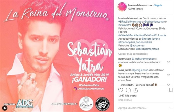 Sebastián Yatra y Camila Gallardo fueron declarados como los "Reyes del Monstruo". Un concurso alternativo donde se eligen a los favoritos alternativos del festival.