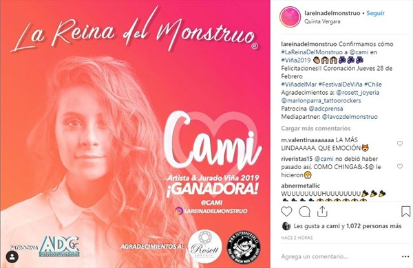 La chilena logró superar a Becky G, Jani Dueñas, Pía Marí Silva y a Camila Recabarren.