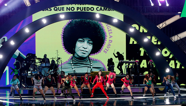 Sus referencias al contexto actual continuaron con "Prenderemos Fuego al Cielo", donde la artista lució el pañuelo verde por el aborto libre. Poco después, se unió al público cuando un numeroso grupo de asistentes cantó el himno feminista "Un violador en tu camino", del colectivo Las Tesis. "Nos vemos el 8M", replicó la cantante.