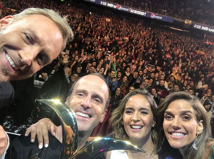 Antes de bajarse del escenario, Kramer se sacó una selfie junto a su esposa y los animadores del certamen, donde el fondo se veía al “monstruo”.