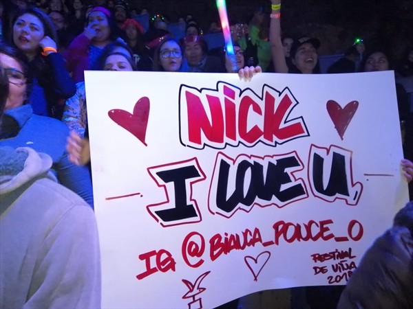 Más que en ninguna otra noche de la actual edición del Festival de Viña, los asistentes se han inspirado para escribir divertidos carteles con motivo de la presentación de Backstreet Boys.