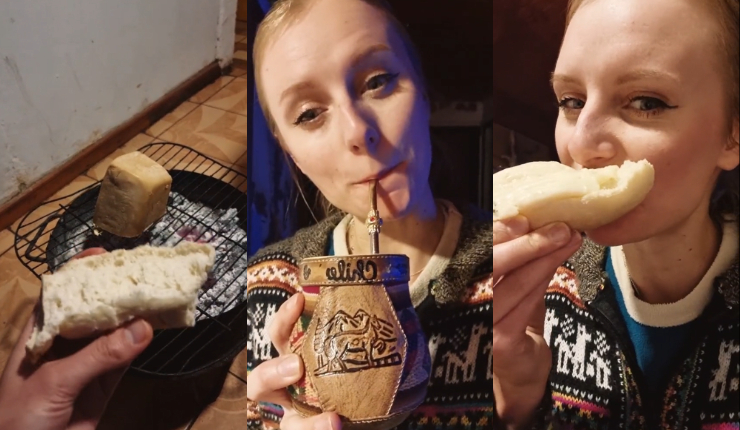 A través de la plataforma TikTok, la joven radicada en Chile compartió un video captado hace dos años durante su primer día de lluvia en nuestro país, donde disfrutaba de un rico pan con queso de cabra de cordillera.