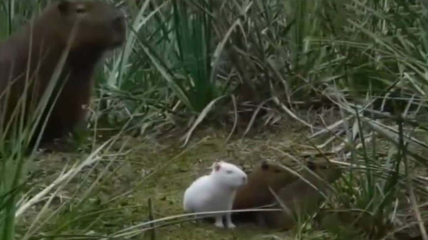 Un capibara albino en libertad causó gran asombro tras ser avistado en la región de Tacuarembó, en Uruguay.