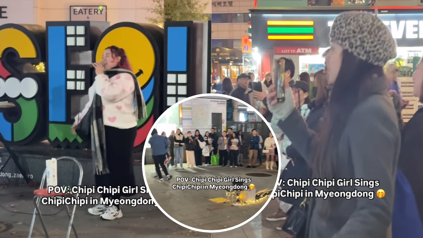 Ahora, la joven fue captada cantando en un reconocido barrio de Seúl, mientras era acompañada por un destacado artista local y estaba rodeada de una masa de oyentes.