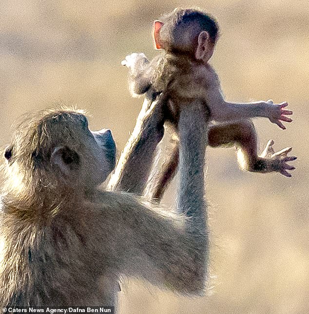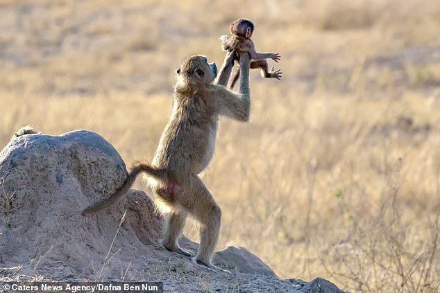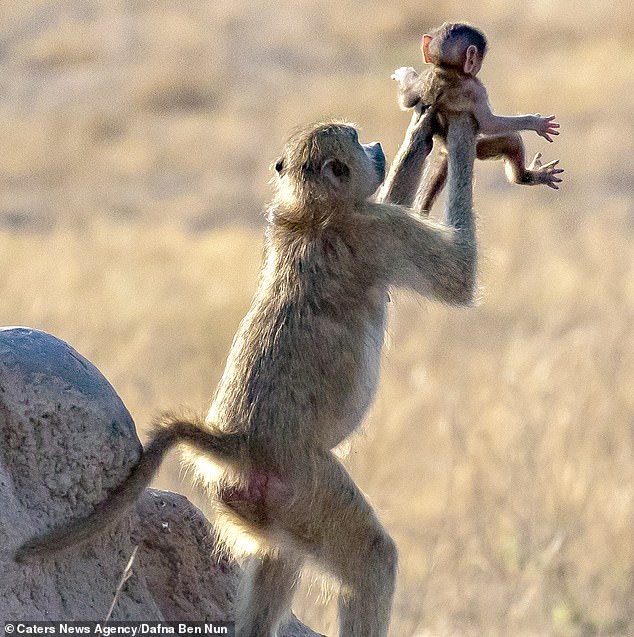 Según consignó el medio británico Daily Mail, la fotógrafa Dafna Ben Nun capturó el momento en que el babuino y su bebé recrearon la muy recordada escena.