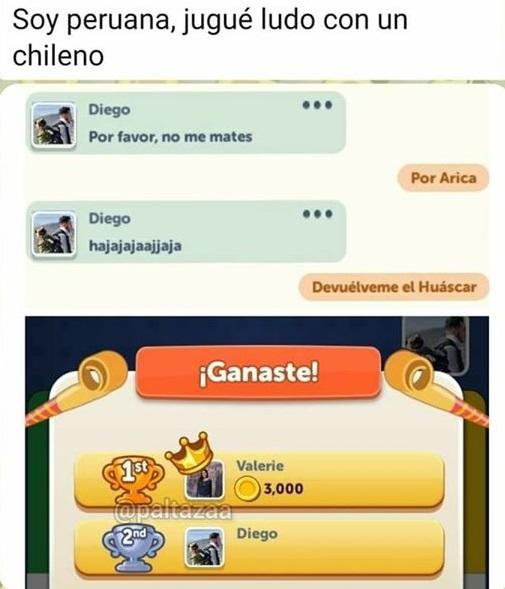El joven sólo atinó a sonreír ante la frase que soltó la mujer. "Devuélveme El Huáscar", fue lo que dijo la peruana antes de obtener la victoria en la partida.
