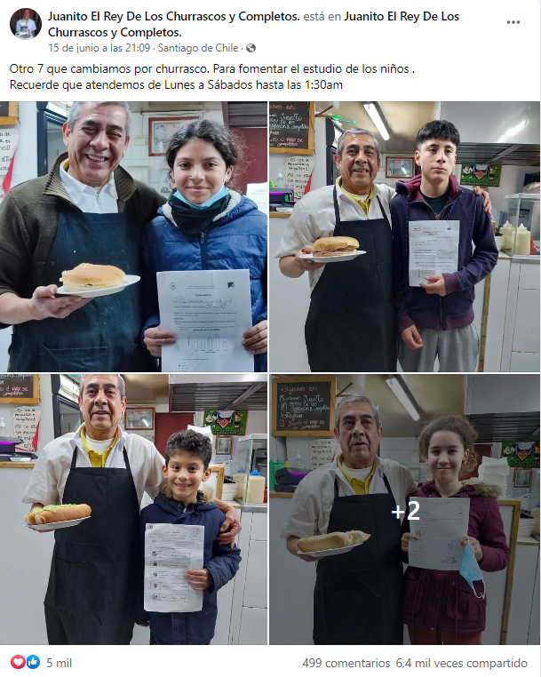 Se trata de "Juanito El Rey de los Churrascos y Completos", quien a través de Facebook dio a conocer su particular iniciativa para motivar a los escolares: regala churrascos a quienes lleguen con una nota 7.