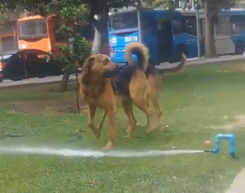 Es el caso de tres perros que fueron sorprendidos en medio de una fechoría: a un costado del cerro Santa Lucía, en el corazón del centro de Santiago, uno de los perros fue captado rompiendo la manguera del sistema de regadío, para así lograr que el can y otros dos compañeros pudieran beber agua.