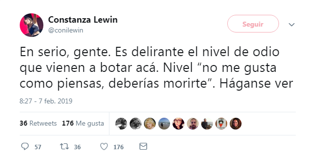 Horas más tarde, la cantante se refirió a las críticas de los usuarios a quienes les criticó "el nivel de odio" de las redes sociales. "Háganse ver", agregó.