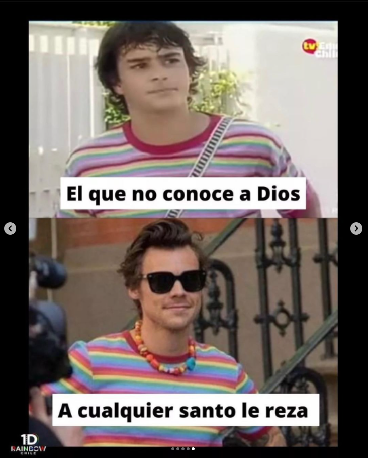 Recientemente, el actor y cantante chileno compartió una imagen que compara un look que utilizó en 2008, cuando participaba en la serie Amango, con uno actual que lució Harry Styles.