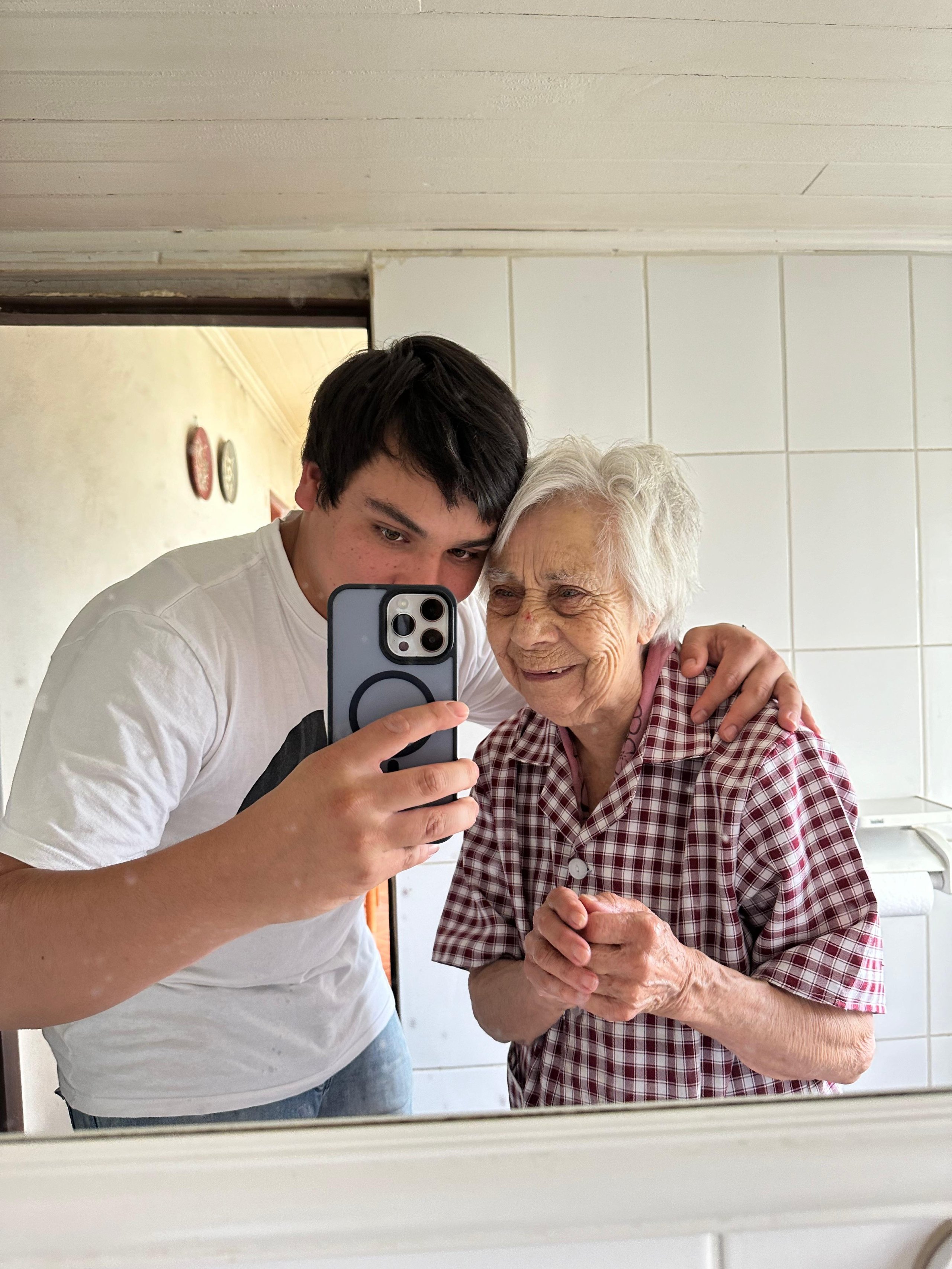 La Inesita, a sus 93 años, no entiende la magnitud de las redes. Pero por ejemplo, cuando vamos al mall, harta gente nos saluda y a mí igual me ha pasado cuando salgo en Concepción, la gente ya me cacha. Constantemente, le voy mostrando los videos y se caga de la risa. Una vez estábamos en el mall y me dijo 'mono, somos famosos'. También recibe regalos, hace poco le llegó unos regalos de Italia y puso una carita de emoción al saber que venían de allá. Yo me lo tomo bien, todo tranquilo, siempre transparente y tratando de alegrar a la Inés, explicarle a la gente lo que está pasando, que estoy haciendo mi práctica y que la veo los fines de semana.