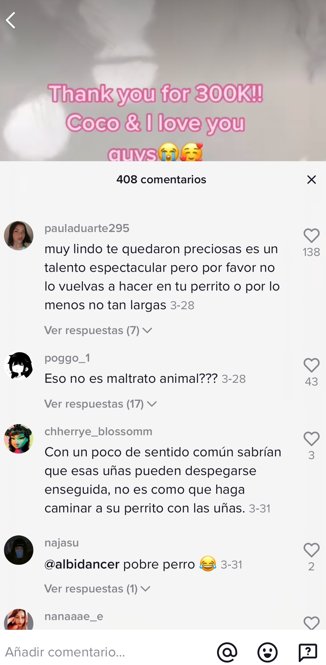 En algunos comentarios le piden que "por favor no lo vuelvas a hacer en tu perrito" o plantean "acaso eso no es maltrato animal?". Mientras que hay quienes creen que se trata de una broma o que simplemente se le ven bonitas.