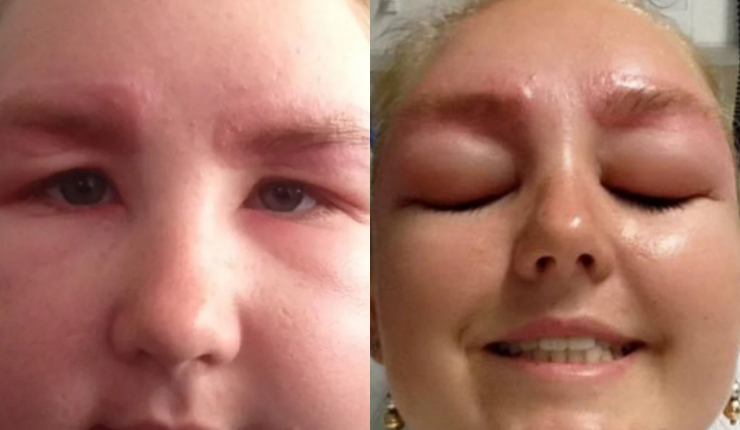 La mujer de 30 años estuvo hospitalizada durante dos días y la acumulación de líquido alrededor de sus ojos incluso la dejó ciega durante 24 horas.