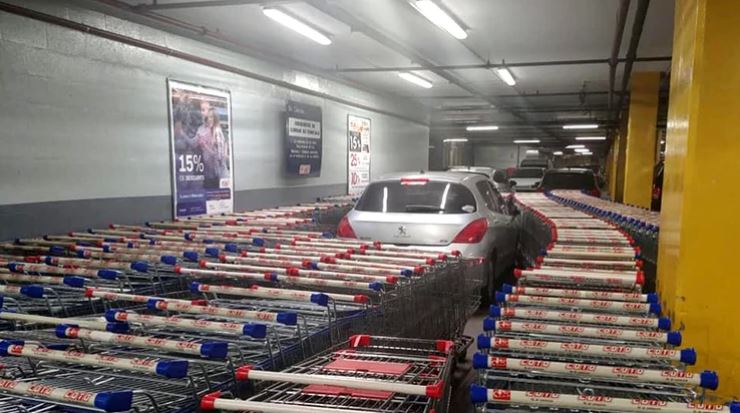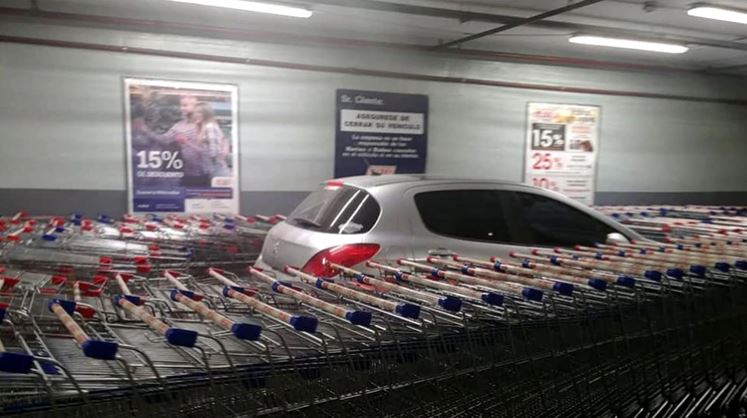 Tal es el caso de lo que ocurrió en Monte Grande, localidad de Buenos Aires, donde una persona estacionó en un lugar inadecuado y los empleados del supermercado optaron por rodear el vehículo con los carros.