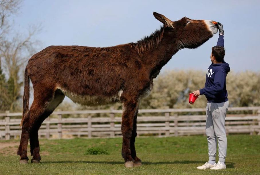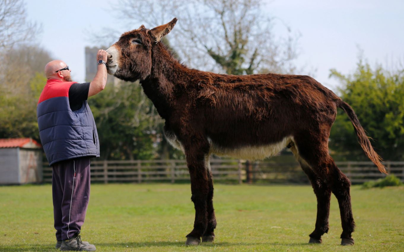 Derrick es un burro británico que a sus cortos cinco años de vida está dando que hablar. Y es que no es menor el dato de mide cerca de 170 cm.