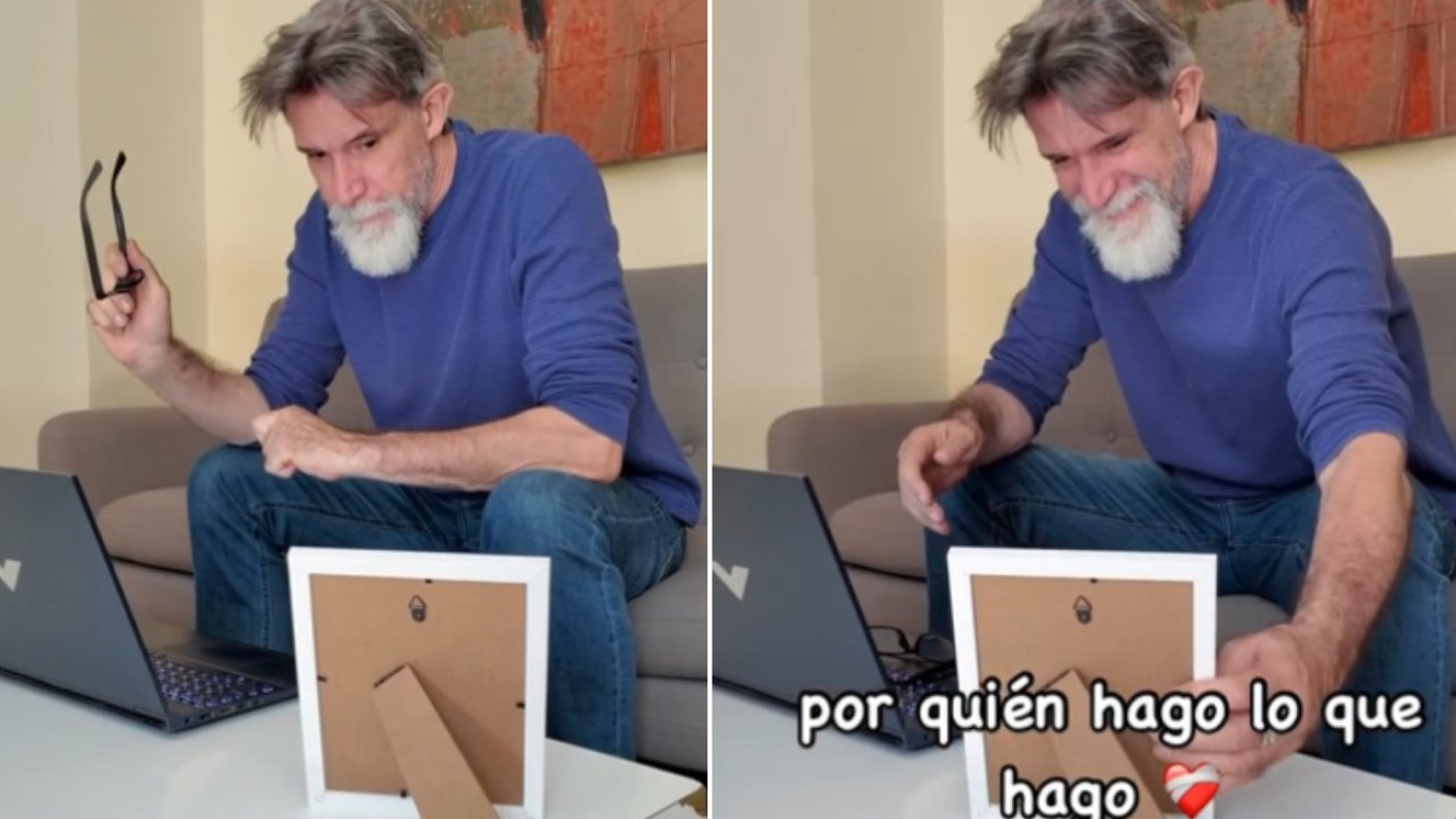 Tras eso, con una notable sonrisa, Melo devuelve la fotografía a su lugar y retoma las labores que estaba haciendo, lo que marca el fin del registro.