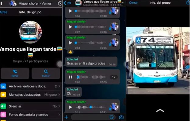 "Todos los días me tomo el 74 para ir laburar y siempre voy con el mismo chofer. Me agregó al grupo de WhatsApp del bondi (micro) donde el loco te avisa por dónde anda así no te clavás en la parada como un pelotudo", escribió el usuario @julyrossi20.
