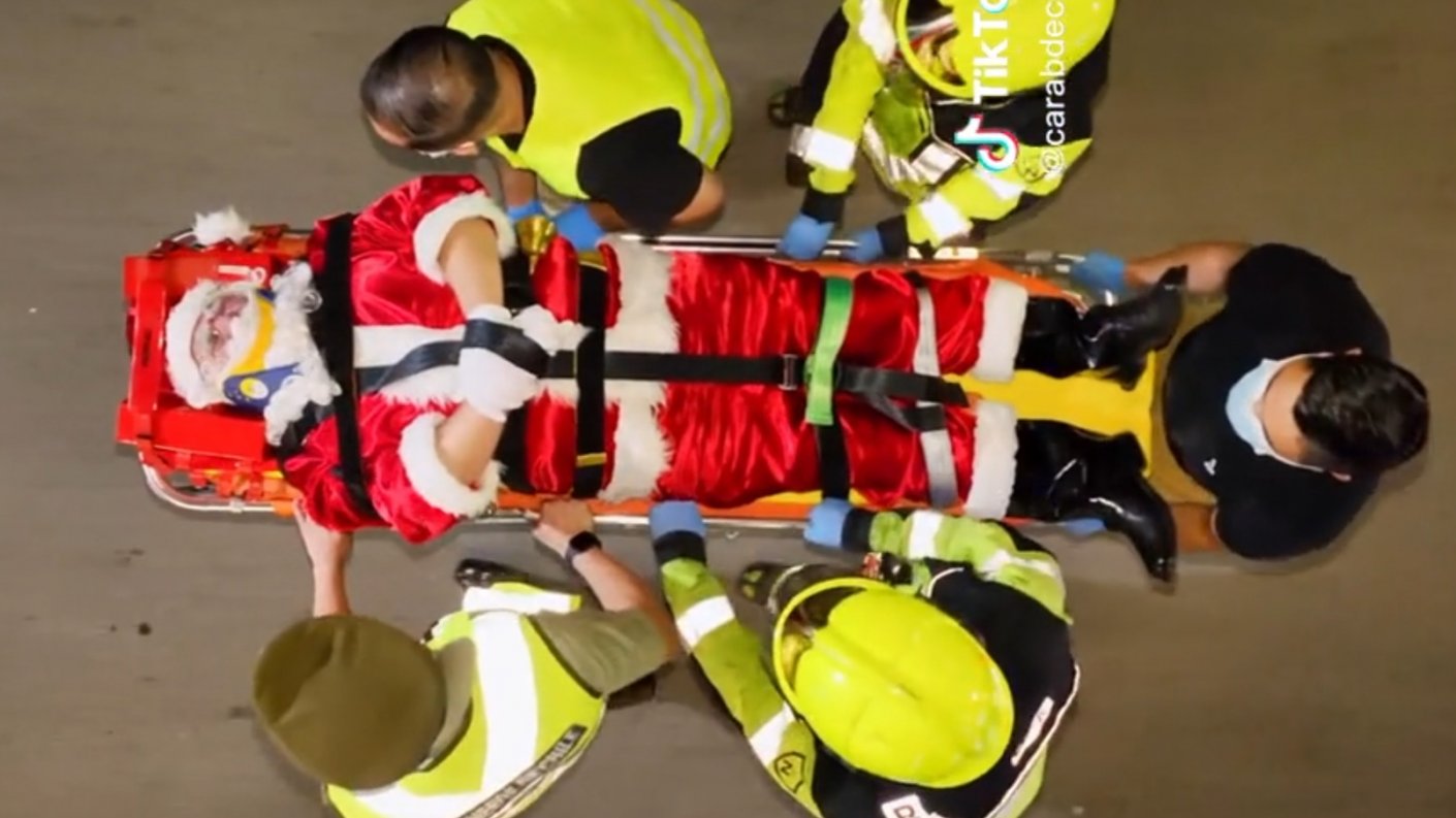 Un imprudente conductor, que miraba su celular mientras manejaba el vehículo, puso en peligro la Navidad tras atropellar al Viejito Pascuero producto de la irresponsable maniobra.