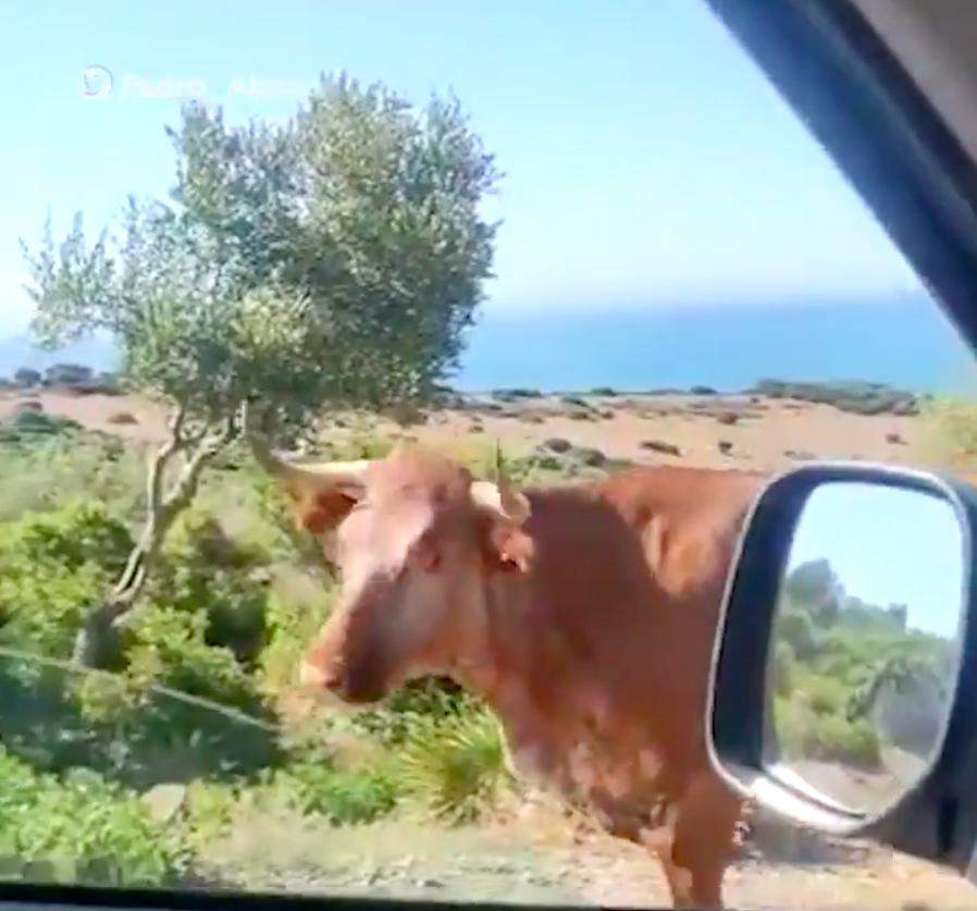 Esta extraña y cómica situación ocurrió en Bolonia, una playa turística ubicada en España. En el video, se puede ver que dos sujetos bajan la velocidad cuando ven a la vaca al costado de la carretera, se detienen y le preguntan por dónde pueden llegar a su destino.