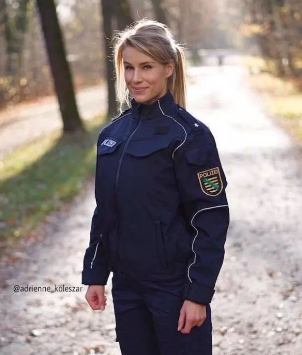 Adrienne Koleszar de 34 años se dio a conocer en todo el mundo a través de redes sociales por dos razones: primero, por ser una de las modelos más lindas del planeta y, segundo, por su vocación de servicio, la que pone en práctica a través de su cargo como oficial de policía del estado de Sajonia en Alemania.