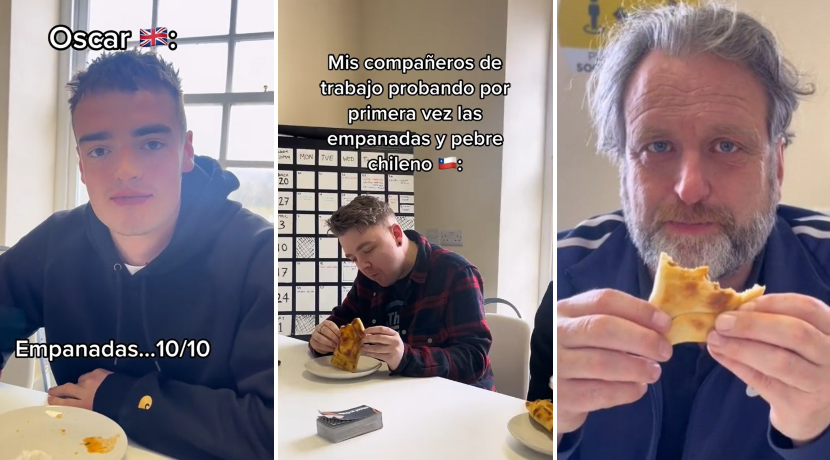 Una chilena oriunda de Irlanda se hizo viral esta semana en redes sociales al publicar un video con las increíbles reacciones de sus compañeros de trabajo, tras probar una empanada de pino por primera vez. "First time trying chilean empanadas and pebre", o bien, "primera vez comiendo empanadas de pino chilenas y pebre", fue como tituló la usuaria Belena Padget al registro, en el que muestra a sus amigos almorzando en el comedor de una oficina. Como parte de una dinámica, la fotógrafa indicó al irlandés y a los tres ingleses que debían, primero, comer el típico plato de nuestro país para luego evaluarlo con una escala del 1 al 10. El primero en someterse a la prueba fue Ian, quien calificó la preparación con una nota que superó el puntaje máximo, pues aseguró que le gustó mucho. "Ok, fácilmente le doy un 11", expresó, ante la mirada incrédula de la compatriota, quien le pidió que fuera honesto con su opinión.